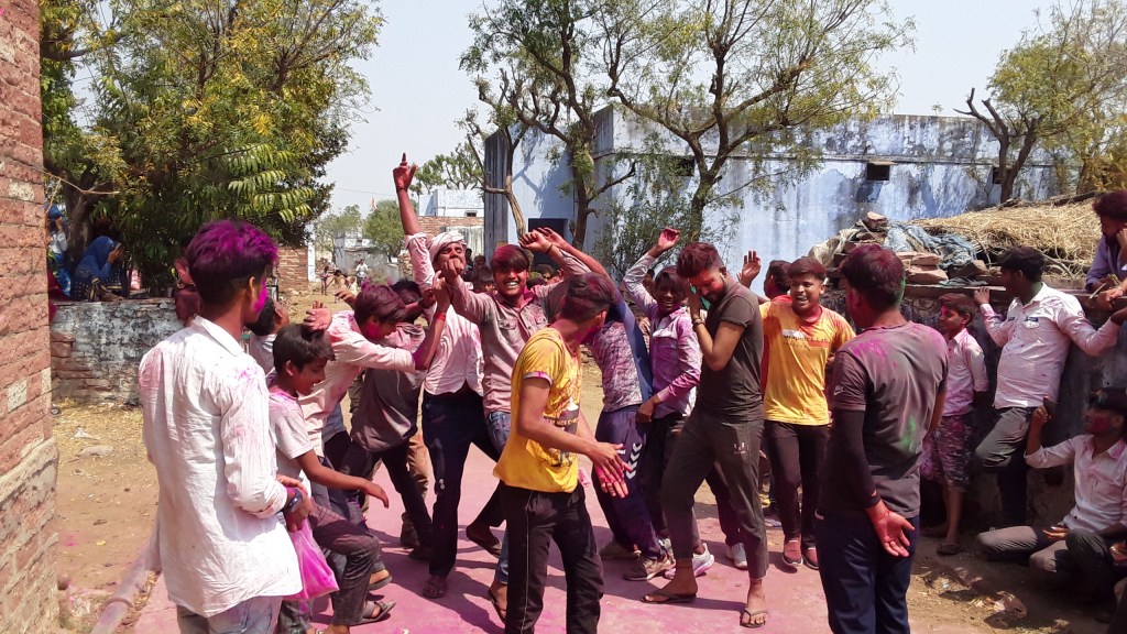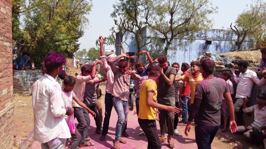 Mandrayal (Karauli) । On the occasion of Holi, the festival of love and harmony, people were seen in the colors of Holi since morning on Dhulandi in village Gurdah (Gangaram Pura) of Mandrayal tehsil. The elders and youth of the village happily applied abir-gulal to each other and hugged. In the midst of Holi, the youth went from house to house and applied Gulal with love.